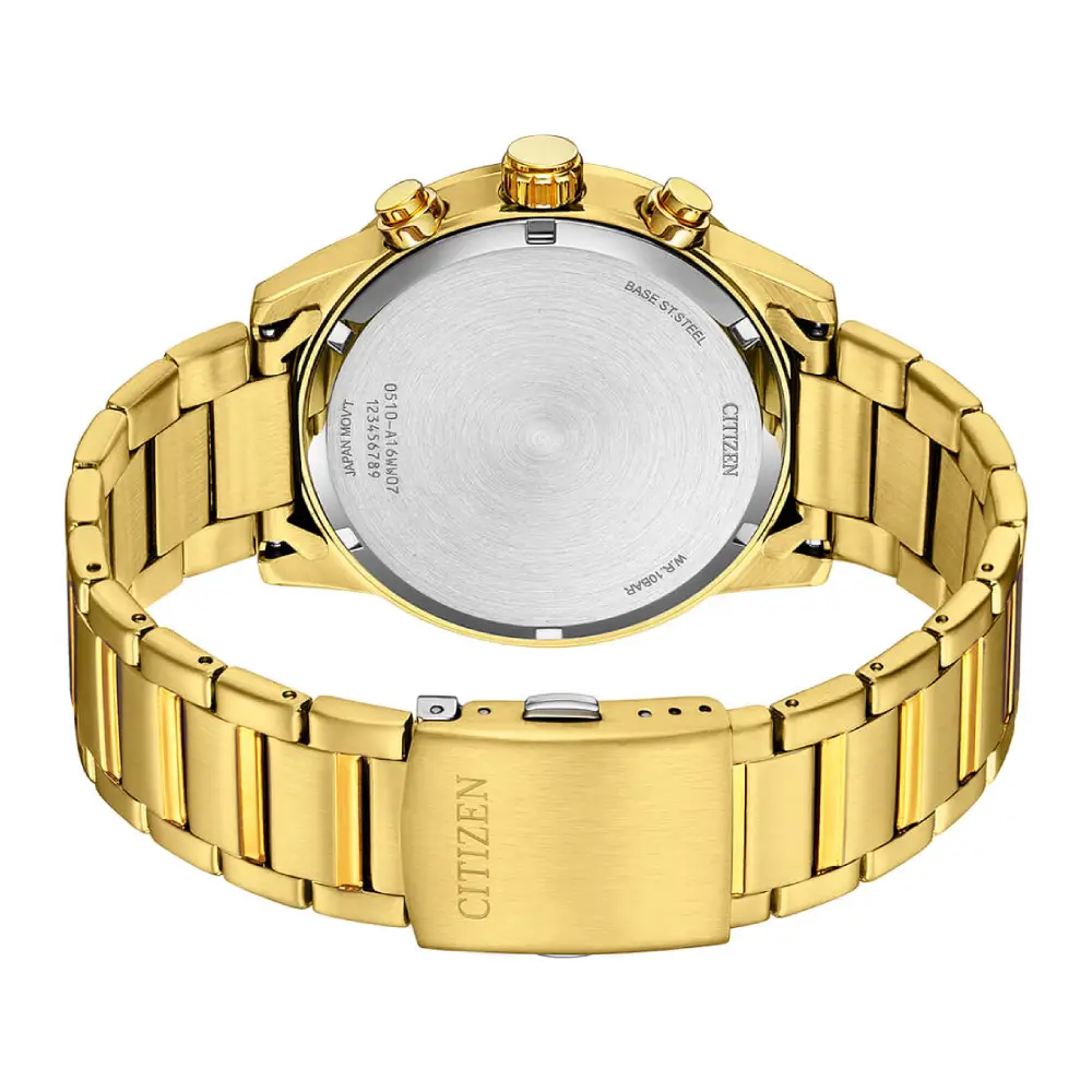 This Citizen Quartz Chronograph is a sophisticated men’s watch featuring a robust stainless steel case and bracelet, with a 44mm case size. The chronograph functionality and date display add practical features, making it ideal for everyday use. The watch is also water-resistant up to 10 ATM and features a durable mineral glass. Perfect for those who appreciate style and functionality.
