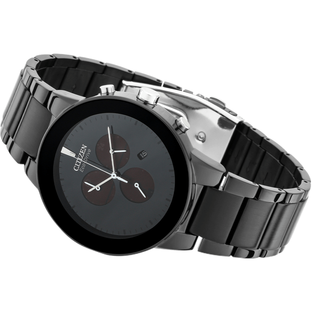 The refined yet sleek design of this Citizen Eco-Drive offers a day-to-night fashion options for the avid trendsetter. This sharp chronograph is featured in a stainless steel case and bracelet with a black dial and the intriguing feature of edge-to-edge glass. Also includes a 1-second chronograph measuring up to 60 minutes, 12/24-hour time and reverse date window. Powered by Eco-Drive- the revolutionary light powered movement from Citizen, this watch has the ability to continuously recharge in any light source and can run for a minimum of six months even in the dark without any charge. This revolutionary earth-friendly technology eliminates the need to change battery frequently and gives you hassle-free timekeeping, never disappointing you when you need it the most. The Eco-Drive movement also come with built-in Insufficient Charge Warning Function and Overcharge Prevention Function