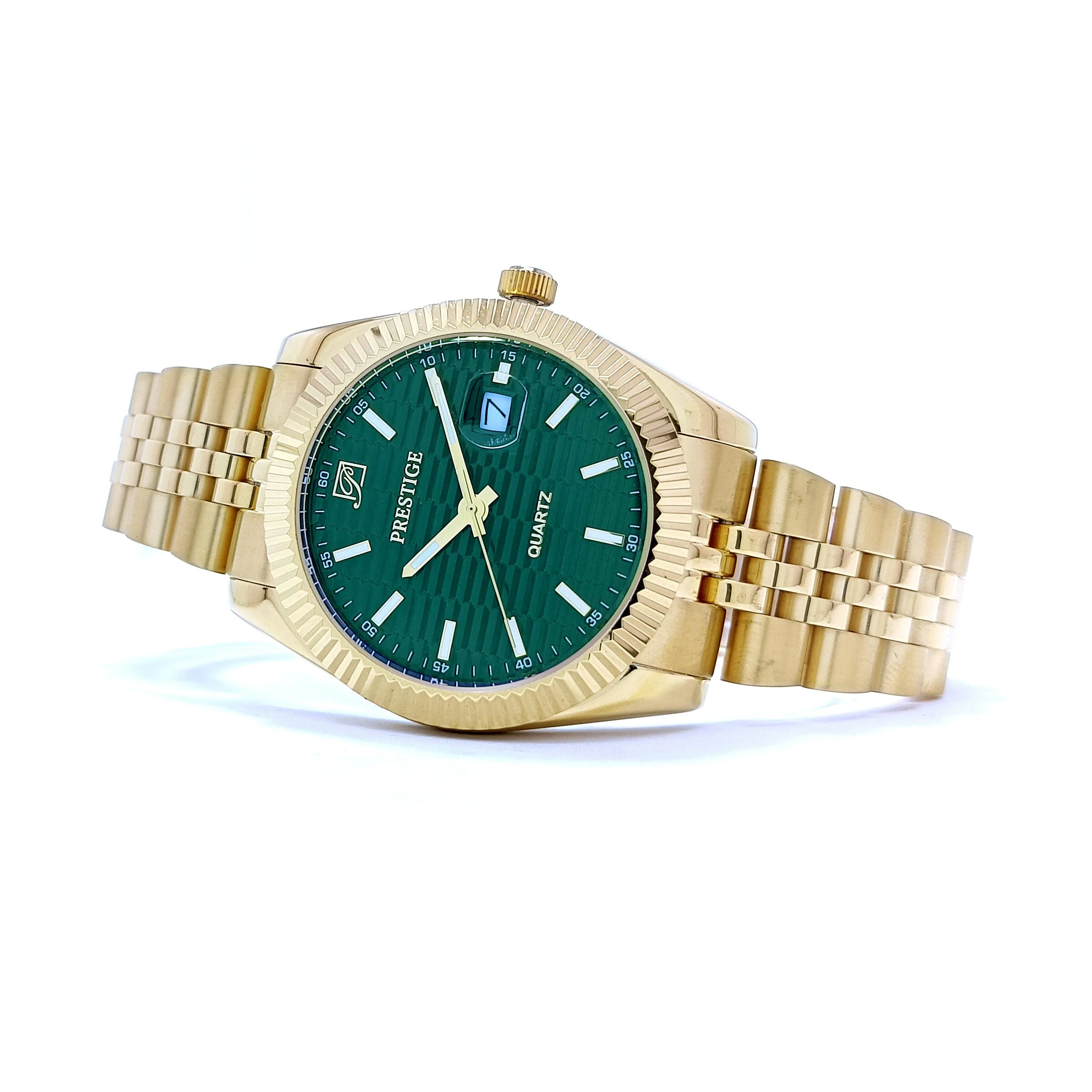 Strap: Gold Plated Stainless Steel Link Brecelet