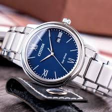 The Citizen AW1670-82L is a men’s Eco-Drive watch featuring a blue dial in a stainless steel case with a matching bracelet, powered by any light source (no battery changes needed). Key features include a date display, 100m water resistance, luminous hands/markers, and a reliable Eco-Drive movement